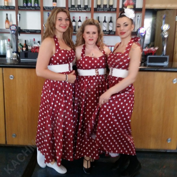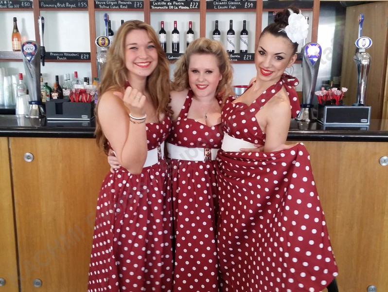 Bar Staff dressed up in costume at the annual 50's Day 2014, held at Lingfield Park Racecourse