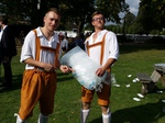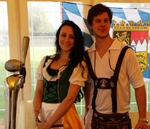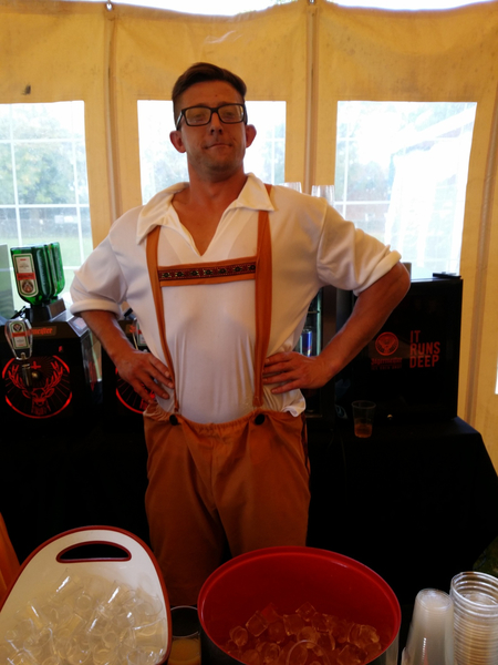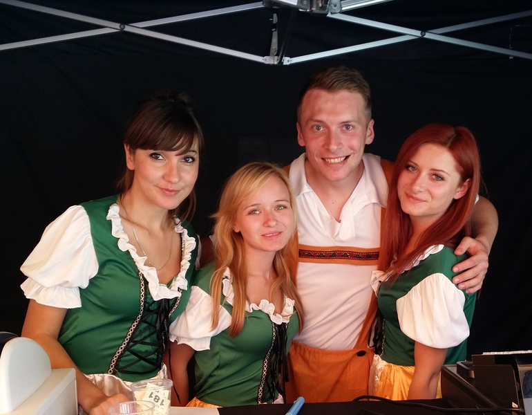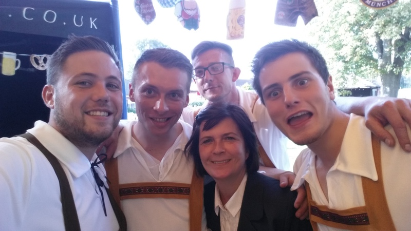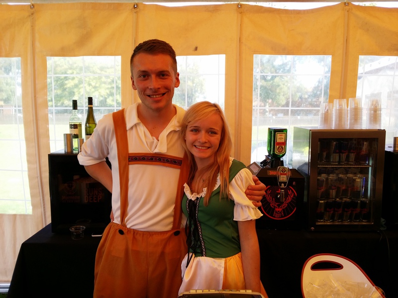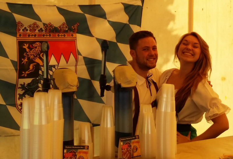 KACHMI Events bar staff dressed up in Oktoberfest costume working in the Oktoberfest Marquee for Lingfield Park Racecourse's annual Oktoberfest raceday